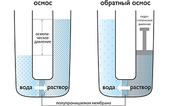 Осмос – это естественный процесс, встречающийся в природе. Обратный осмос – процесс, во время которого под большим давлением растворитель проходит через полупроницаемую мембрану, вследствие чего раствор становится менее концентрированным. Чаще всего в роли растворителя выступает вода, из которой с помощью системы обратного осмоса извлекаются примеси: соли тяжелых металлов, загрязнители, вирусы и бактерии и т.д. Для опреснения воды этот метод стали использовать с 70-х годов ХХ столетия.