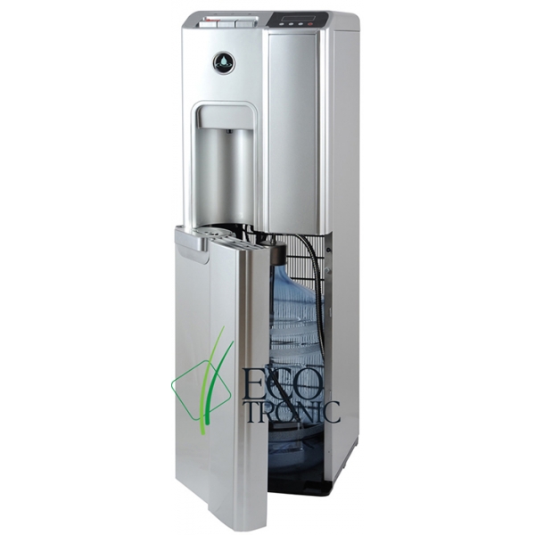 Напольная модель с компрессорным охлаждением воды до 10 градусов. Кулер Ecotronic P7-LX Silver нагревает воду до 90 градусов. Бутыль с водой устанавливается снизу. Ручки крана изготовлены в виде клавиш. Данная модель представлена в конфигурации серебристого цвета.
