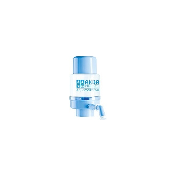 Практичная и удобная механическая помпа, голубого цвета, от компании Аквамаркет. В помпе используется антибактериальный фильтр. Подходит для стандартных 18.9-литровых бутылей.