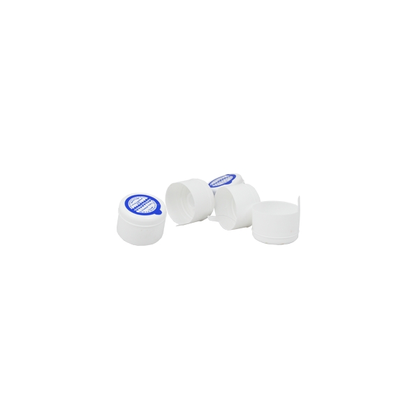 Двокомпонентна пробка для стандартних 18,9 л. полікарбонатних бутлів білого кольору. Виготовлена з харчового первинного поліетилену (ПЕ).