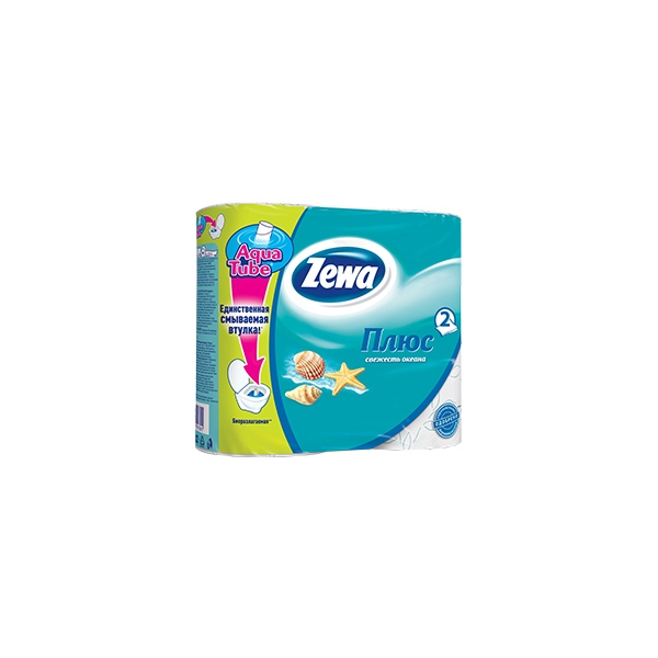 Туалетний папір Zewa плюс свіжість океану має 2 шари. В упаковці знаходиться 4 рулони. Поєднання м'якого і приємного на дотик туалетного паперу і свіжості океану.
